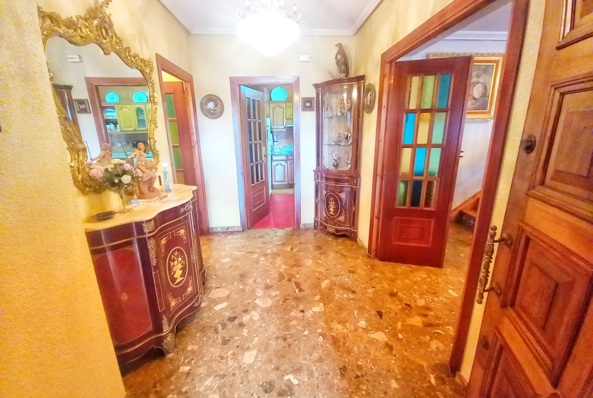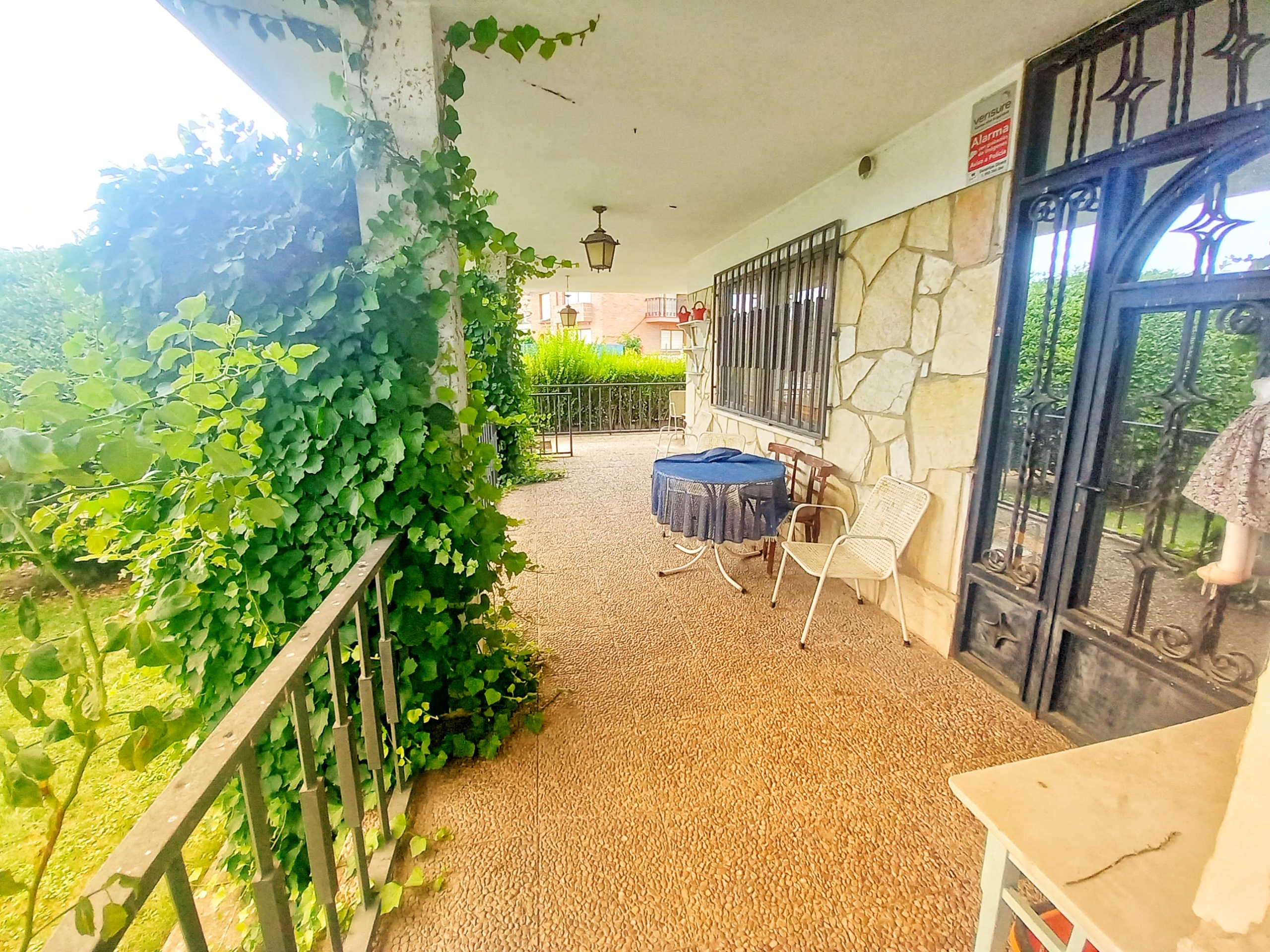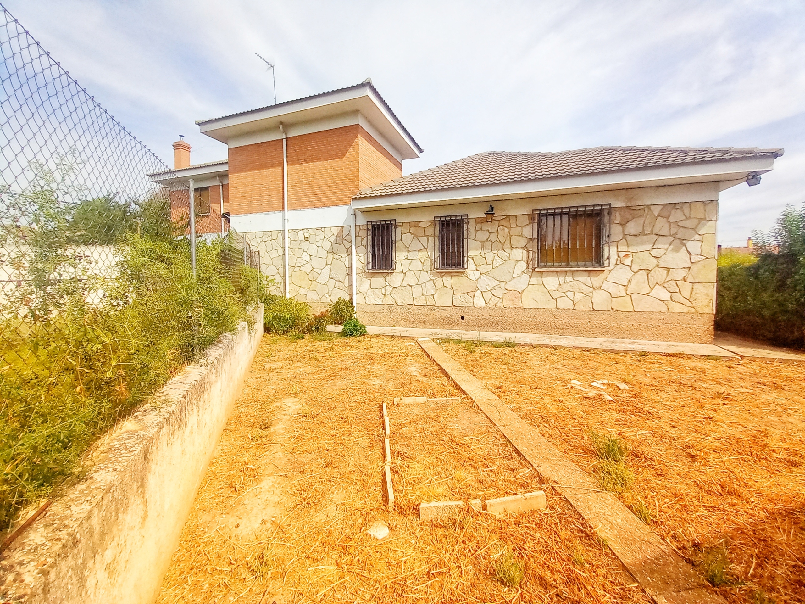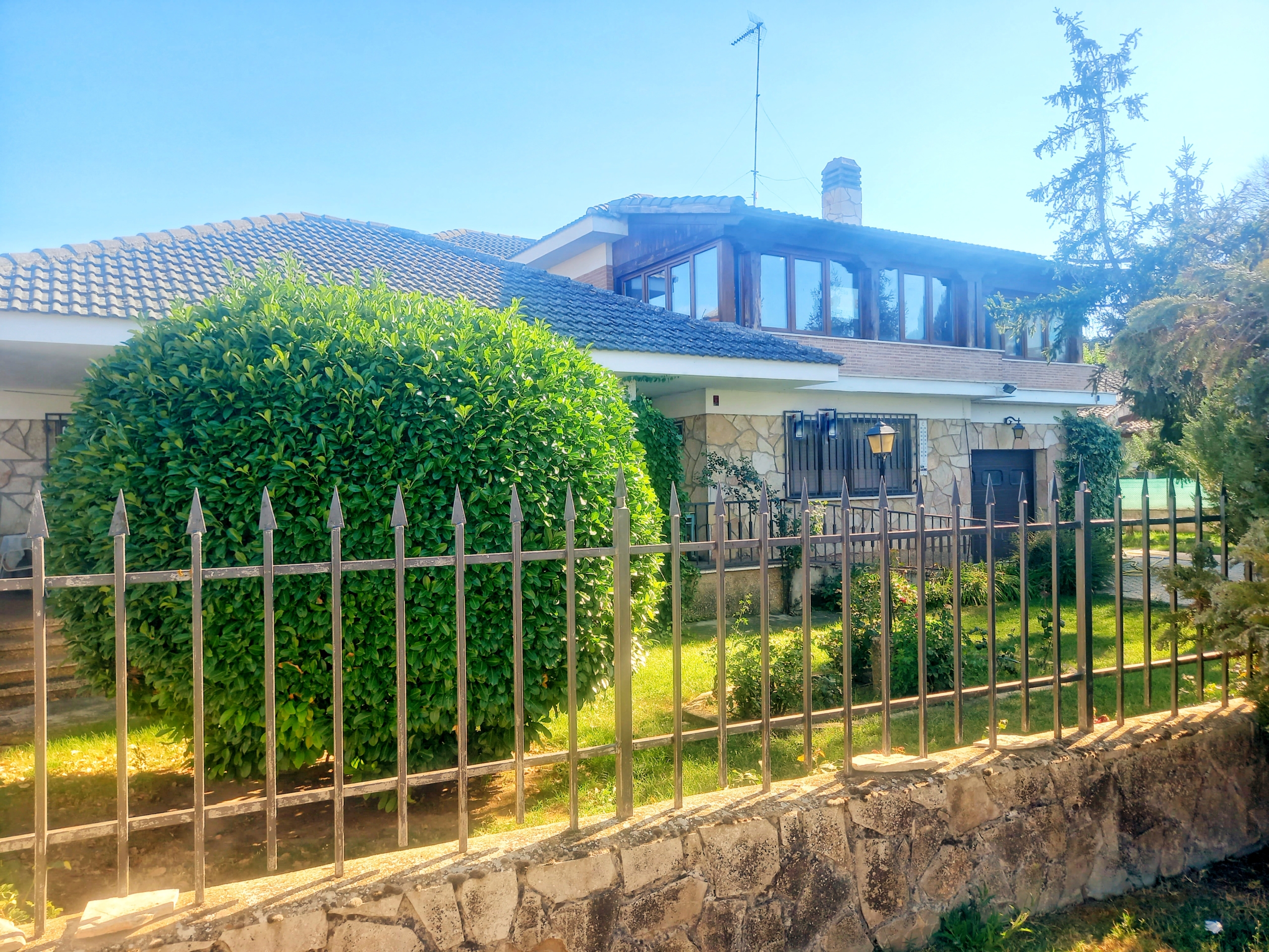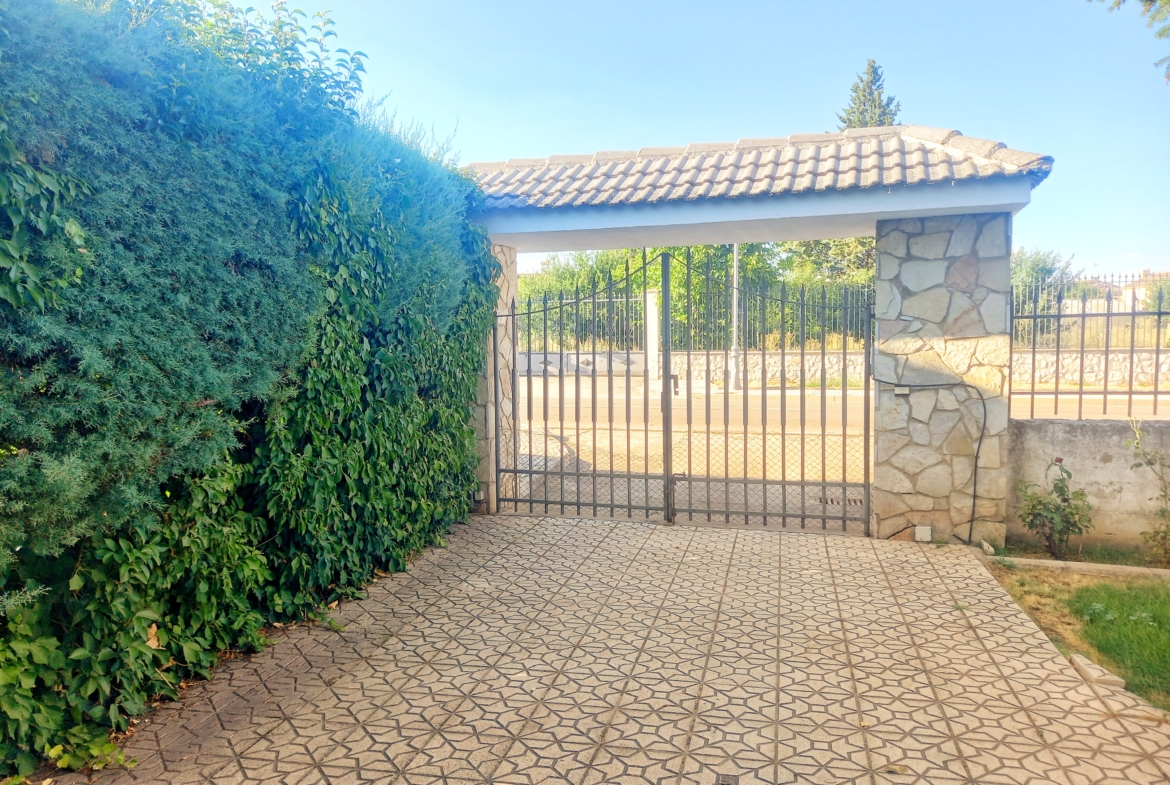 El chalet que traemos hoy es impresionante, consta de una parcela de 925 m2, y una edificación de 320 m2. Accedemos al chalet por una puerta de forja, con suficiente espacio para estacionar el vehículo, además enfrente vemos el garaje por si no queremos dejar el coche a la intemperie, observamos una rampa que nos da acceso a la casa además de unas escaleras. En el jardín nos encontramos un montón de terreno con césped, vemos un pozo, una piscina de construcción para refrescarnos en los días estivales. Nos topamos con un área con tres casetas de perros por si tenemos animales, varias casetas, dos para aperos de jardinería, otra mas grande como merendero, una parrilla exterior para nuestros asados, y una mesa de piedra para poder disfrutar de una buena comida o cena con toda la familia, nos topamos con una puerta de cristal que nos da acceso a otro gran terreno con pozo, con muchas posibilidades incluso para una huerta, damos la vuelta bordeando el chalet, volvemos a la rampa, accediendo a la casa, nos encontramos con un recibidor amplio. A la derecha nos topamos con un grandioso salón con una escalera y una puerta que nos comunica con el garaje, la escalera da subida a una sala grande con un despacho, una habitación de. matrimonio, otra habitación con un armario con cama abatible, un cuarto de baño totalmente equipado con bañera, comunicado por una puerta con una inmensa terraza acristalada con cristales climalit, con una gran iluminación, tiene espacio para todo. Volvemos a bajar y dejamos el salón atrás. Vamos a la cocina amplia y funcional totalmente equipada con todos los electrodomésticos incluso televisión, nos comunica con el patio, la parrilla y la mesa de piedra. Pasamos por un pasillo que desemboca en una estancia que comunica con dos habitaciones y dos cuartos de baño equipados, uno con plato de ducha y otro con bañera. También hay otra habitación que sirve como salita de estar o como comedor.