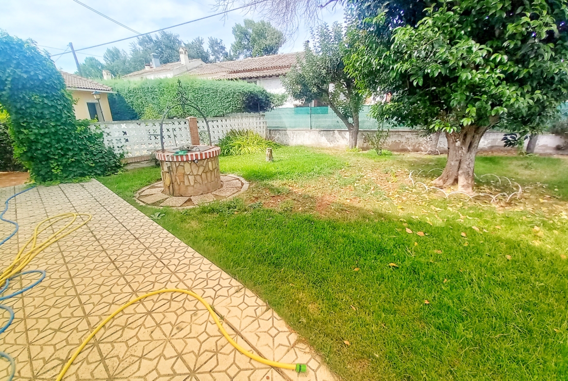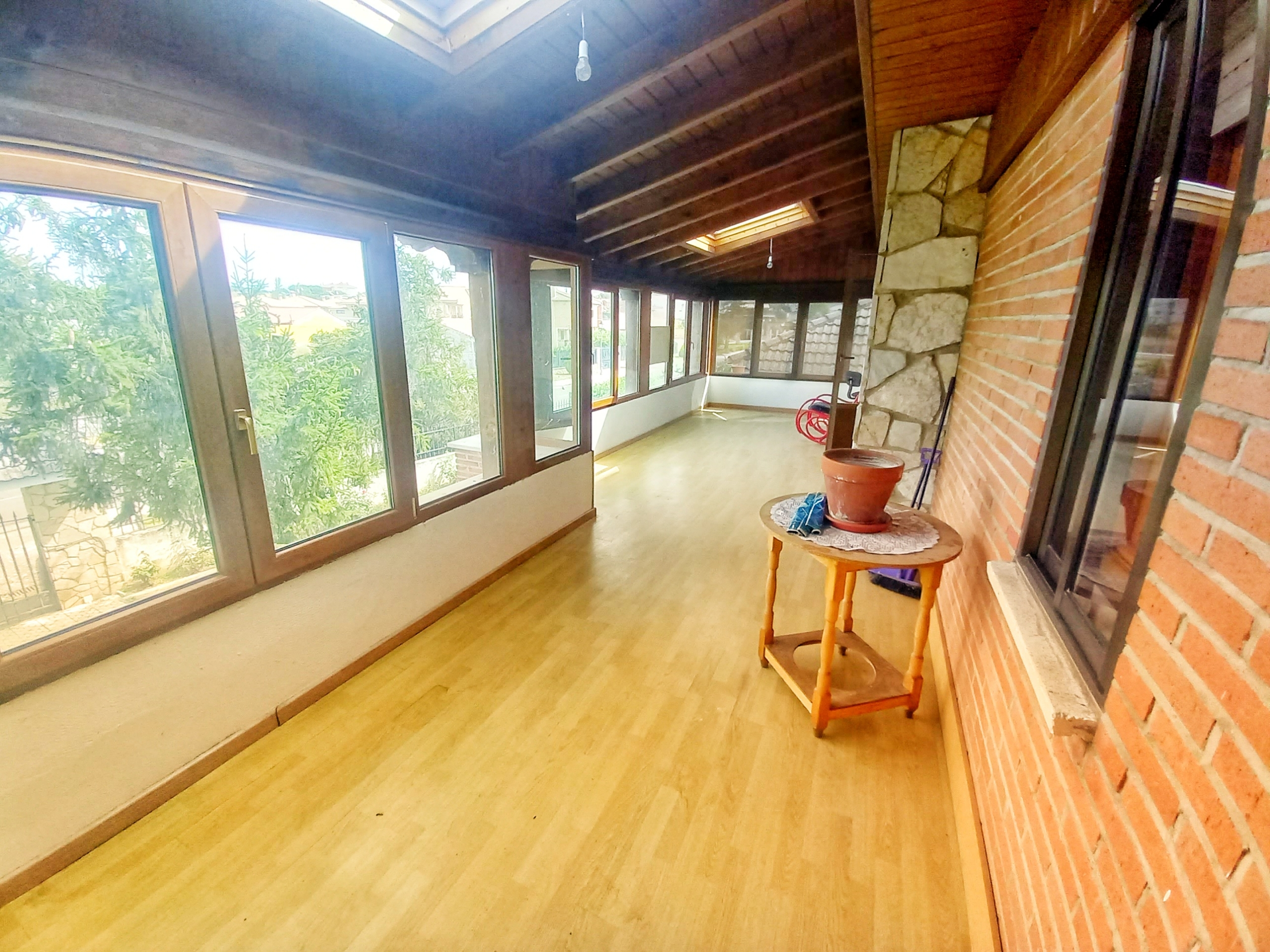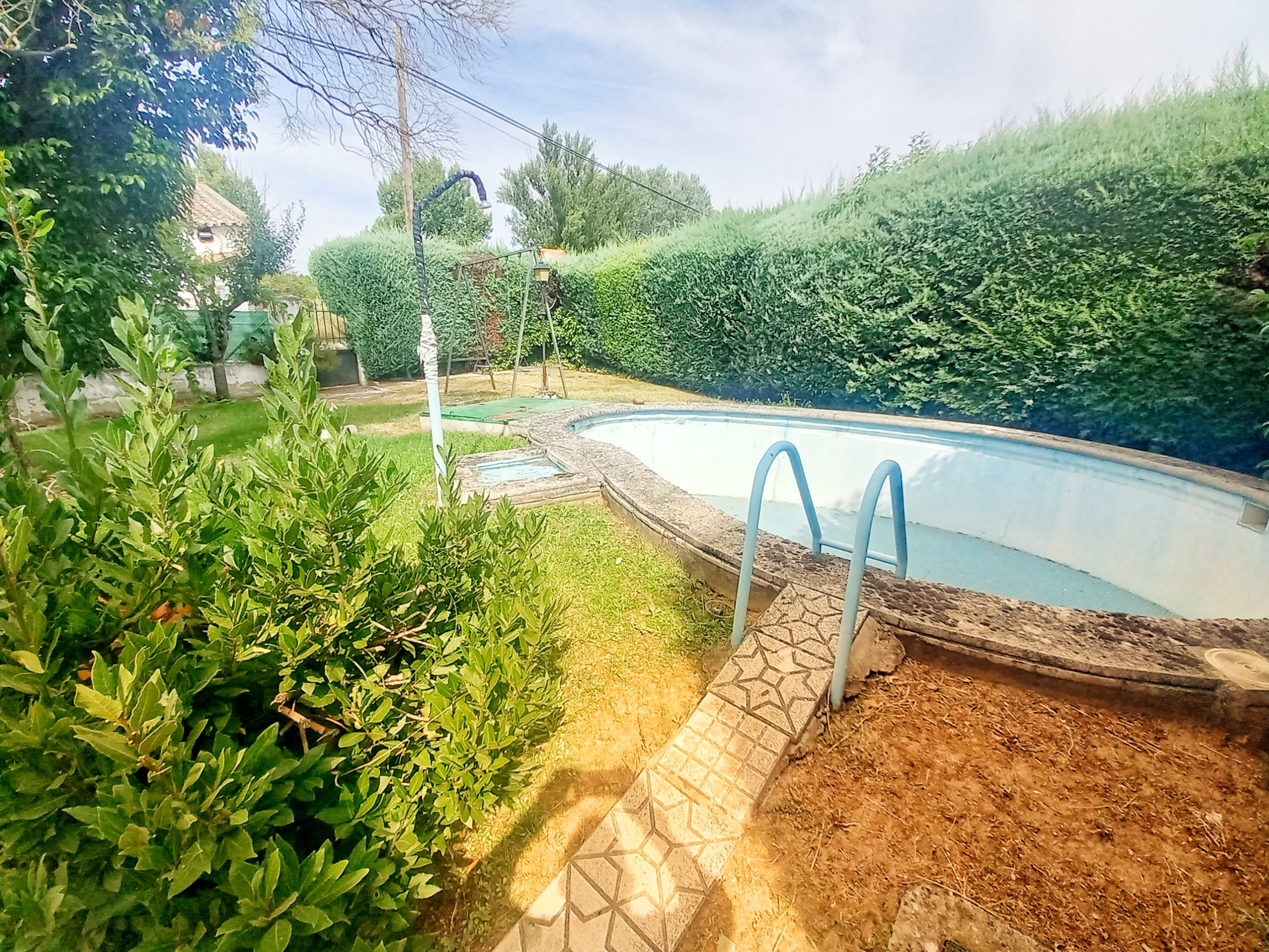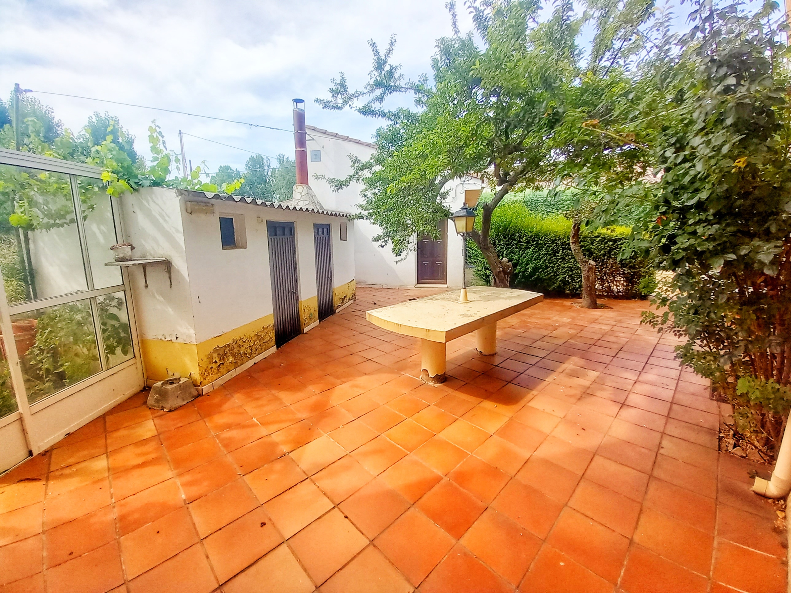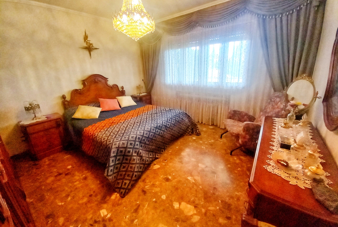 El chalet que traemos hoy es impresionante, consta de una parcela de 925 m2, y una edificación de 320 m2. Accedemos al chalet por una puerta de forja, con suficiente espacio para estacionar el vehículo, además enfrente vemos el garaje por si no queremos dejar el coche a la intemperie, observamos una rampa que nos da acceso a la casa además de unas escaleras. En el jardín nos encontramos un montón de terreno con césped, vemos un pozo, una piscina de construcción para refrescarnos en los días estivales. Nos topamos con un área con tres casetas de perros por si tenemos animales, varias casetas, dos para aperos de jardinería, otra mas grande como merendero, una parrilla exterior para nuestros asados, y una mesa de piedra para poder disfrutar de una buena comida o cena con toda la familia, nos topamos con una puerta de cristal que nos da acceso a otro gran terreno con pozo, con muchas posibilidades incluso para una huerta, damos la vuelta bordeando el chalet, volvemos a la rampa, accediendo a la casa, nos encontramos con un recibidor amplio. A la derecha nos topamos con un grandioso salón con una escalera y una puerta que nos comunica con el garaje, la escalera da subida a una sala grande con un despacho, una habitación de. matrimonio, otra habitación con un armario con cama abatible, un cuarto de baño totalmente equipado con bañera, comunicado por una puerta con una inmensa terraza acristalada con cristales climalit, con una gran iluminación, tiene espacio para todo. Volvemos a bajar y dejamos el salón atrás. Vamos a la cocina amplia y funcional totalmente equipada con todos los electrodomésticos incluso televisión, nos comunica con el patio, la parrilla y la mesa de piedra. Pasamos por un pasillo que desemboca en una estancia que comunica con dos habitaciones y dos cuartos de baño equipados, uno con plato de ducha y otro con bañera. También hay otra habitación que sirve como salita de estar o como comedor.
