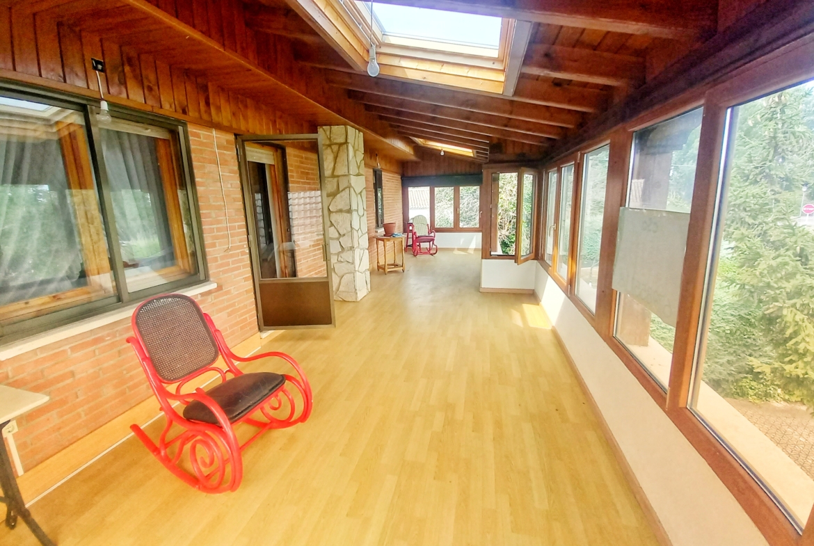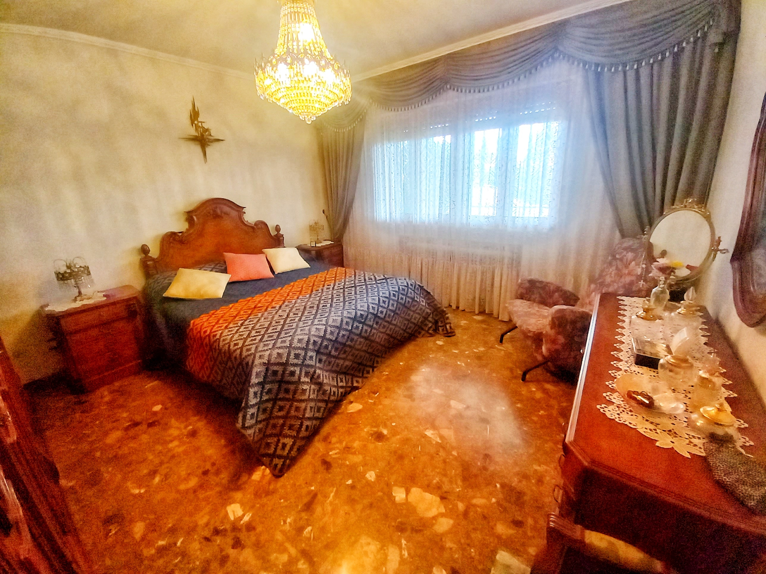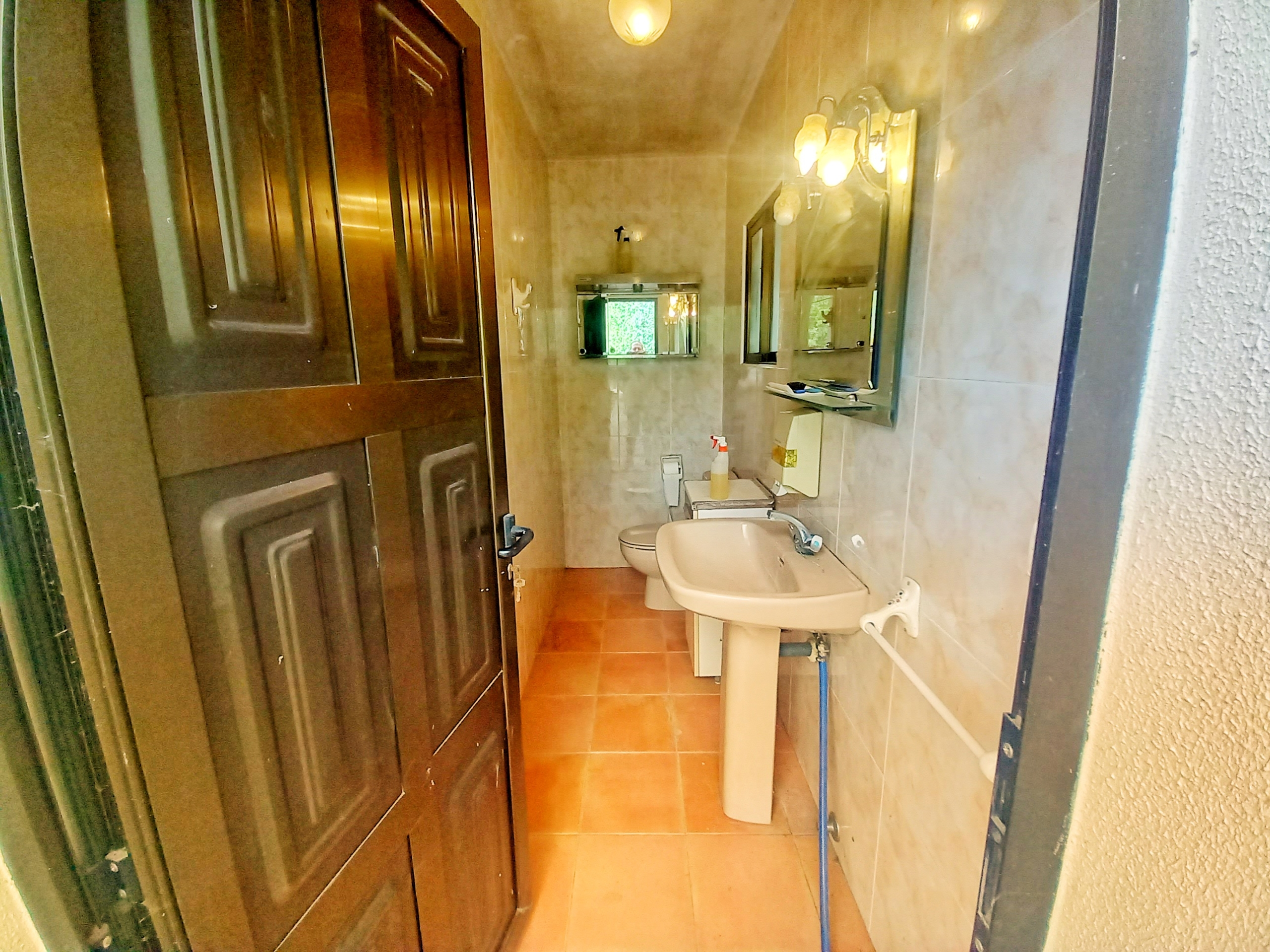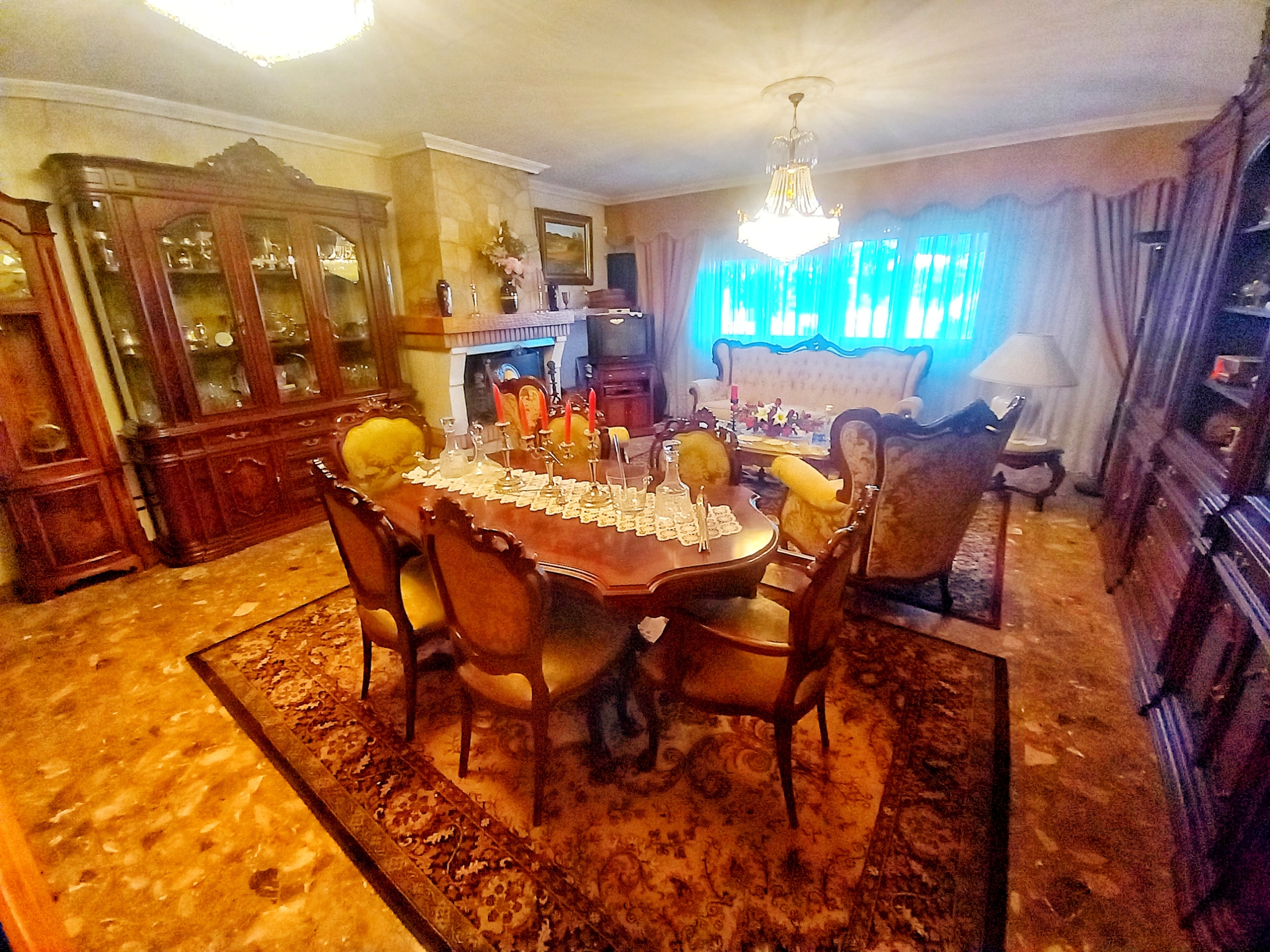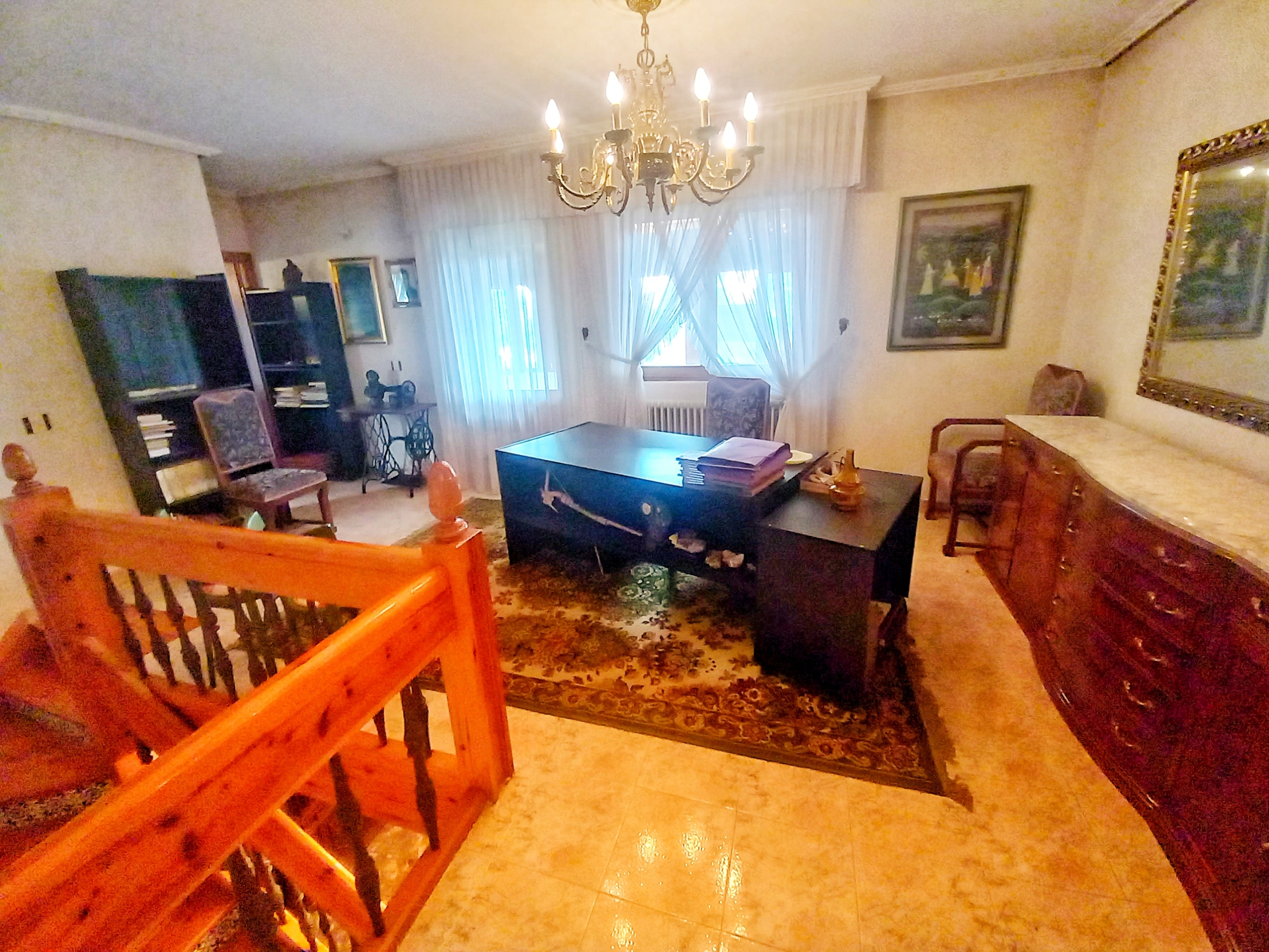 El chalet que traemos hoy es impresionante, consta de una parcela de 925 m2, y una edificación de 320 m2. Accedemos al chalet por una puerta de forja, con suficiente espacio para estacionar el vehículo, además enfrente vemos el garaje por si no queremos dejar el coche a la intemperie, observamos una rampa que nos da acceso a la casa además de unas escaleras. En el jardín nos encontramos un montón de terreno con césped, vemos un pozo, una piscina de construcción para refrescarnos en los días estivales. Nos topamos con un área con tres casetas de perros por si tenemos animales, varias casetas, dos para aperos de jardinería, otra mas grande como merendero, una parrilla exterior para nuestros asados, y una mesa de piedra para poder disfrutar de una buena comida o cena con toda la familia, nos topamos con una puerta de cristal que nos da acceso a otro gran terreno con pozo, con muchas posibilidades incluso para una huerta, damos la vuelta bordeando el chalet, volvemos a la rampa, accediendo a la casa, nos encontramos con un recibidor amplio. A la derecha nos topamos con un grandioso salón con una escalera y una puerta que nos comunica con el garaje, la escalera da subida a una sala grande con un despacho, una habitación de. matrimonio, otra habitación con un armario con cama abatible, un cuarto de baño totalmente equipado con bañera, comunicado por una puerta con una inmensa terraza acristalada con cristales climalit, con una gran iluminación, tiene espacio para todo. Volvemos a bajar y dejamos el salón atrás. Vamos a la cocina amplia y funcional totalmente equipada con todos los electrodomésticos incluso televisión, nos comunica con el patio, la parrilla y la mesa de piedra. Pasamos por un pasillo que desemboca en una estancia que comunica con dos habitaciones y dos cuartos de baño equipados, uno con plato de ducha y otro con bañera. También hay otra habitación que sirve como salita de estar o como comedor.